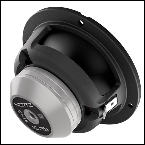 The ML 700.3 Legend car audio midrange features the V-cone geometry upgrade, the Neodymium magnet assembly and the threespoke anti-resonant aluminium alloy basket with vented holes.