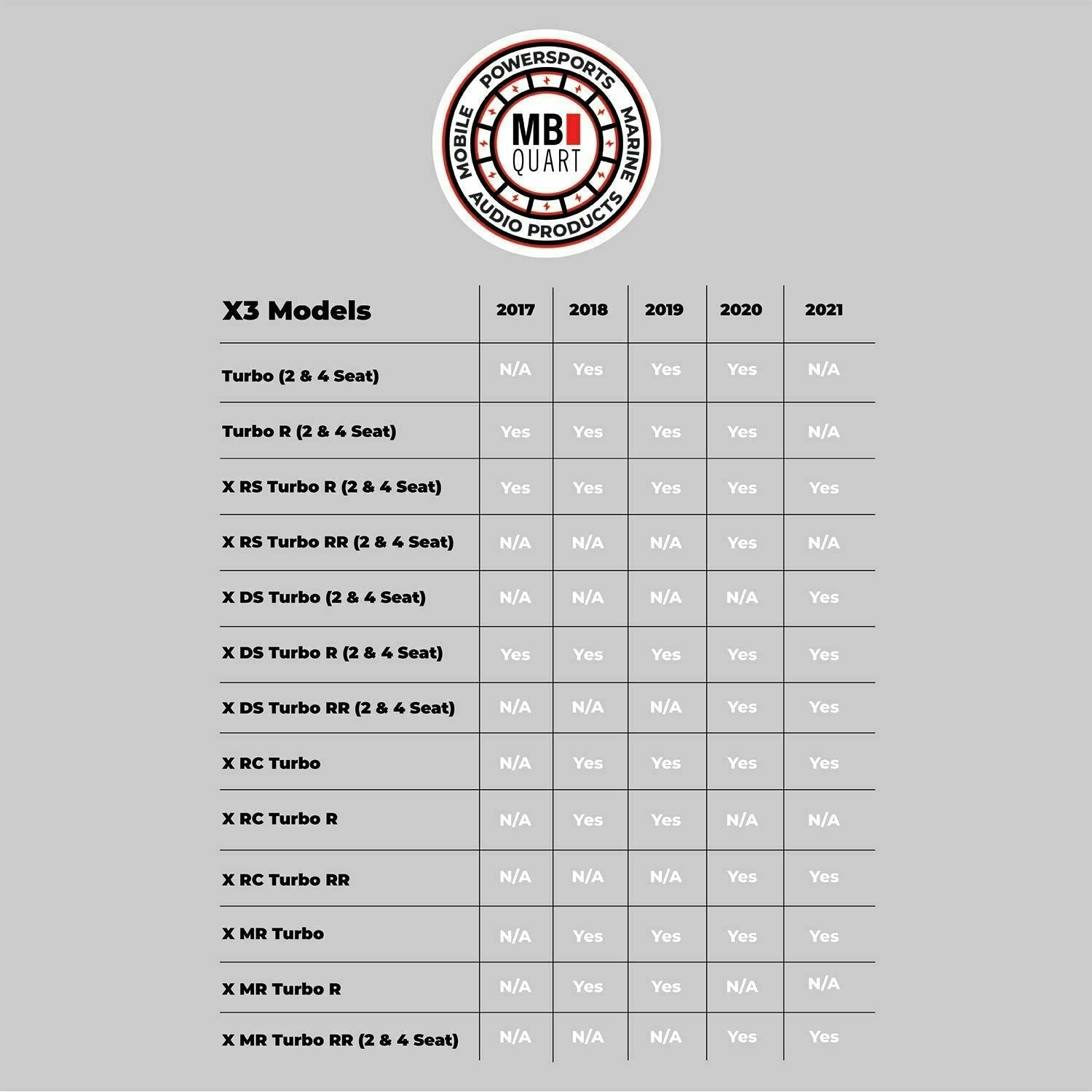 Can-Am Maverick X3 UTV Tuned Audio Package: Five Speaker 800 Watt STAGE 5 Audio System includes AM/FM, BT LED Source Unit, 4 speakers, under seat 10 inch subwoofer, and all necessary mounting panels and harnessing are included.